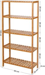 Banyo Rafı 5 Katlı Bambu Dik Raf 9 Seviyede Yüksekliği Ayarlanabilir Çok Fonksiyonlu, Oturma Odası, Koridor, Mutfak İçin Uygun 60x26x130 cm Doğal Renk Bcb35Y