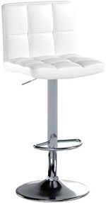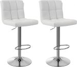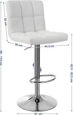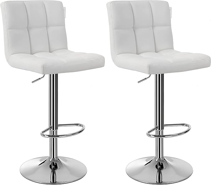 Bar Tabureleri, 2’li Set, Yüksekliği Ayarlanabilir Pu Kapaklı Bar Sandalyeleri, 360° Döner Sandalye, Arkalık ve Ayaklıklı Mutfak Sandalyesi, Lobi, Tezgah, Krom Kaplama Çelik, Beyaz Ljb64W
