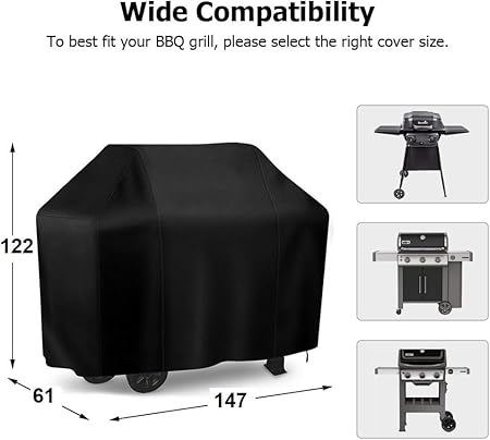 Evrensel Uyumluluk: Çeşitli boyut seçenekleriyle (örneğin 120x60x120 cm, 147x61x122 cm, 105x49x102 cm) çoğu gazlı ve kömürlü barbekü modeliyle uyumludur (Outback Excel 300, Weber, Char-Broil, Nexgrill, Kenmore, Napoleon ve daha fazlası). Barbekünüzün ölçülerinden yanlarda en az 5 cm daha geniş bir örtü seçerek tam koruma sağlayabilirsiniz.