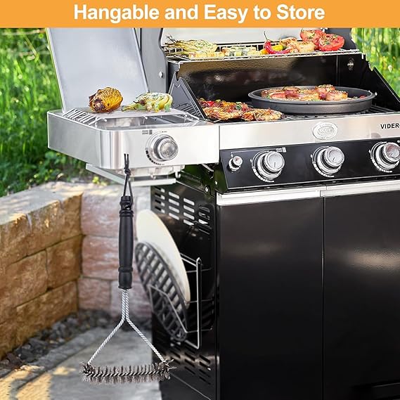 ✅Haşlanma önleyici sap: Izgara fırçası, elde iyi oturan ve yanmış yiyecek artıklarını temizlerken manevra yapmayı kolaylaştıran ergonomik, hafif, kaymaz ve kaymaz bir sapa ve sapın ucundaki pratik bir asma halkasına sahiptir, kolay saklama için ızgaraya asılabilir.