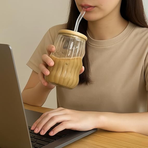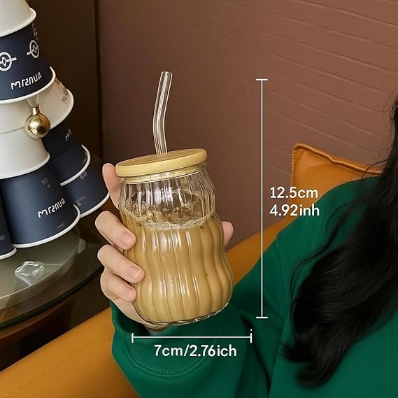 Bardağı Isıya Dayanıklı Ice Latte Cam Pipetli Bardak Kahve Kokteyl Cam Sunum Bardağı Meşrubat Kapaklı Bardak 400ml (tek, adet, 2)