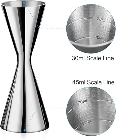 Profesyonel görünümlü uzun çubuk jigger, şık barmen ekipmanınıza gerçekten uyacaktır Oymalı ölçüm – Bu jigger iki ölçüme sahiptir ve işaretleri kesinlikle doğru ve okunması kolaydır Bir taraf çekimleri ölçer (10ml, 20ml ve 30ml dolu), diğer ölçüler çekimleri (30ml ve 45ml tamamlandı) Hatların hassas ölçümler için okunması kolaydır ve kesinlikle doğru miktarda sıvı garantilidir MÜKEMMEL Tutma – Bu ölçüm kabı kokteylini tutarken kesinlikle rahat hissedeceksiniz