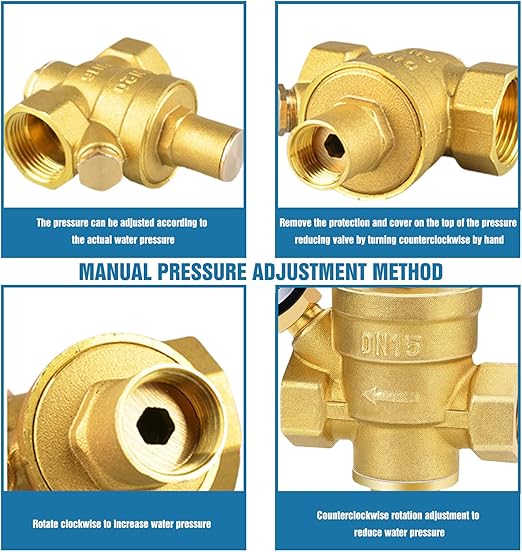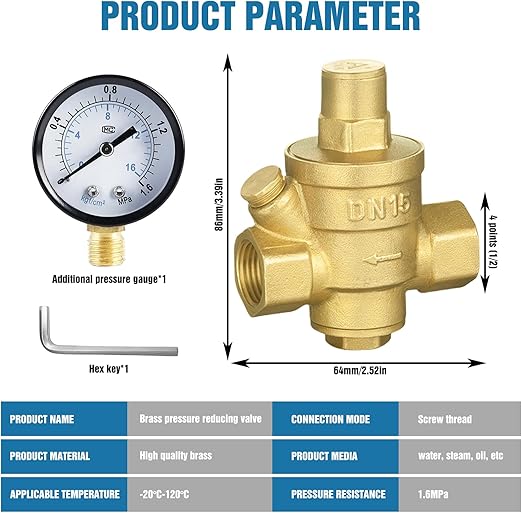 Çok yönlü: Bu DN15 1/2 inç su basınç düşürücü ve çoğu musluk suyu cihazının önüne monte edilebilir. Basınç düşürücü su birçok evde, binada ve fabrikada kullanılabilir. Basıncı değiştirmek için sadece regülatörün üstündeki pirinç vidayı ayarlayın