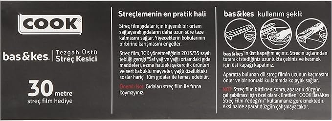 Bas&Kes Streç Film Kesme Aparatı, 30 cm x 30 m, Kırmızı