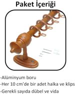 Başlıklı Raysız Eko Rustik Perde Askısı (Alüminyum Boru) Plastik Halka ve Klips Meşe 125 cm