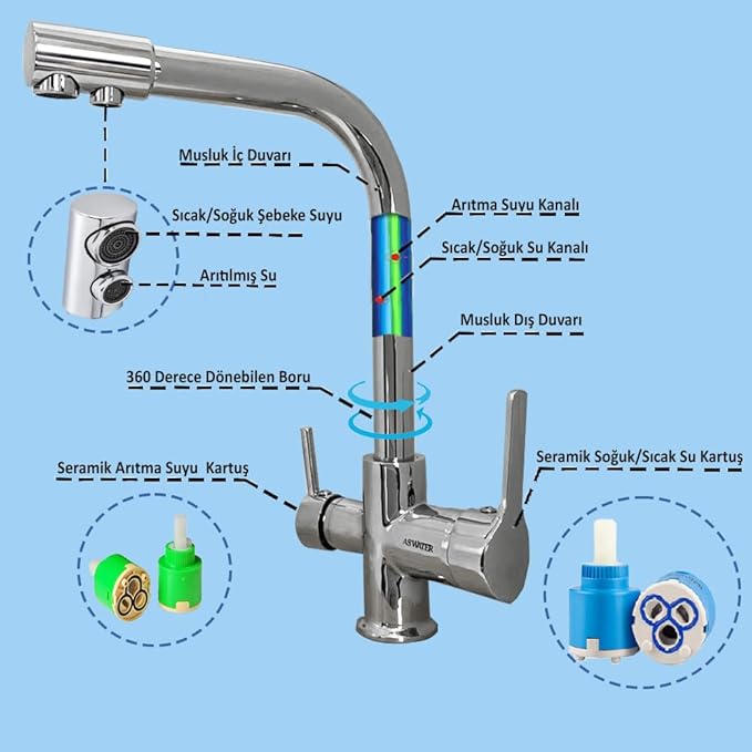 Bataryası 3 Yollu Musluk Sıcak-soğuk Mix Arıtma Krom, 41553YK