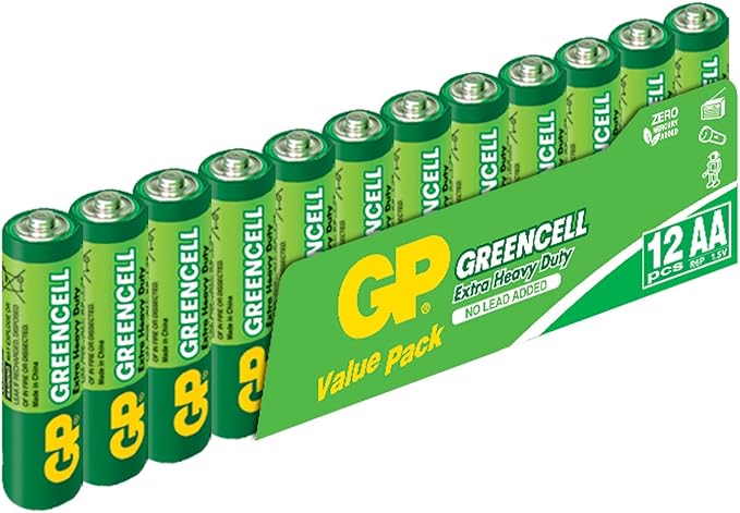 Batteries GP15G Greencell R6P/1215/AA Kalem Pil, 1.5 Volt, 12’li Paket, Yeşil/Sarı/Beyaz