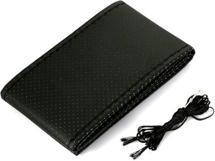 Siyah araç direksiyon kılıfı, mikrofiber deri direksiyon kılıfı, evrensel boyut 37 – 39 cm, kaymaz, kırmızı çizgi