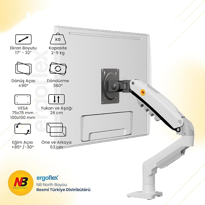 Bayou NB F80 Amortisörlü 2-9 kg Monitör Standı 2026 Versiyon (Beyaz)