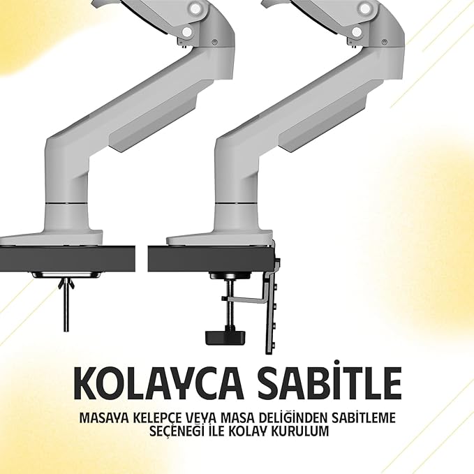 ② TAMAMEN AYARLANABİLİR: Dayanıklı gazlı yay sistemi, monitörünüzün istenen herhangi bir konumda kolayca konumlandırılmasını sağlar; bilgisayarınızı istediğiniz şekilde kişiselleştirin; C-kelepçe veya Delik montajı kurulumunu desteklemektedir; kaliteli malzemeler, kol bağlantınızın sabit kalmasını sağlar, sınıfındaki en sağlam masa montajıdır.