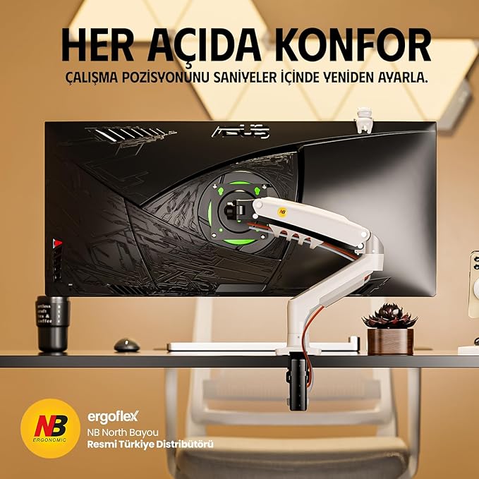 ① NB F80 resmi Türkiye distribütörü Bizbize Elektronik , Ergoflex garantisi ile en son versiyonu ile sisteminize değer katıyor.Monitörünüzün yüksekliğini ve açısını ayarlama özgürlüğünün tadını çıkarın. Nb F80 güçlü bir monitör koludur ve ergonomik bir konfor içinde çalışabilmeniz için monitörünüzü ihtiyacınız olan yere yerleştirmenize olanak tanıyan bir ergonomi etkileşimli ekran koludur. İzleme konforunu artırmaya ve göz, sırt ve boyun yorgunluğunu azaltmaya yardımcı olur. Yüksekliği ayarlanabilen kol, daha fazla çalışma alanı sağlar, kullanılmadığında masayı veya masaüstü alanını boş bırakır.