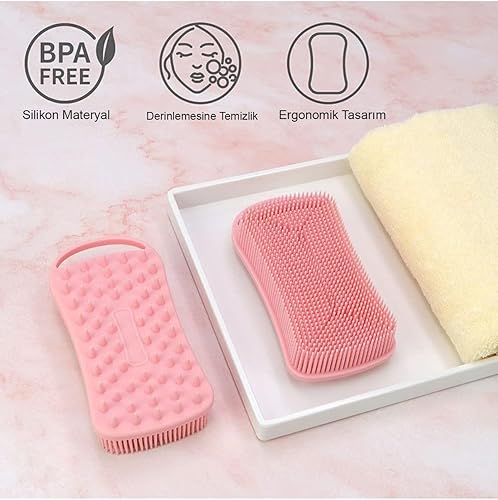 Beauty Çift Taraflı Silikon Vücut Ve Saç Bakım Fırçası, Saç Ve Vücut Derisine Masaj Yapan Şampuan Tarağı Popbeauty00015