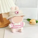 Aksesuar seti: Pembe ve beyaz renk kombinasyonunda şapka, örgü kazak ve şişeden oluşan oyuncak bebek için yüksek kaliteli aksesuar seti