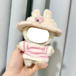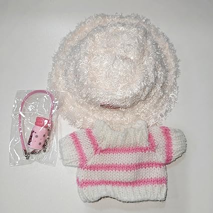 bebek aksesuar seti, 17 cm oyuncak bebek kıyafeti, şapka, örgü kazak ve şişe, pembe-beyaz, kendin yap çocuk hediyeleri, bebeksiz