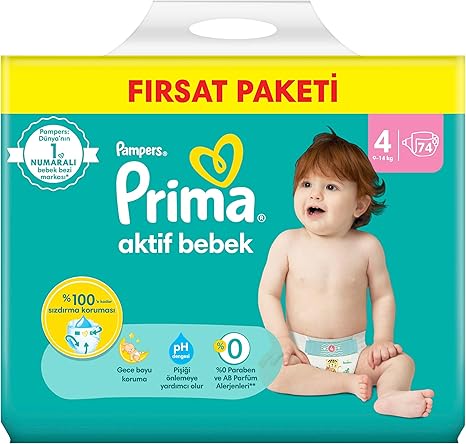 Bebek Bezi Aktif Bebek 4 Beden 74 Adet Mega Fırsat Paketi