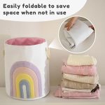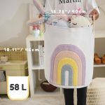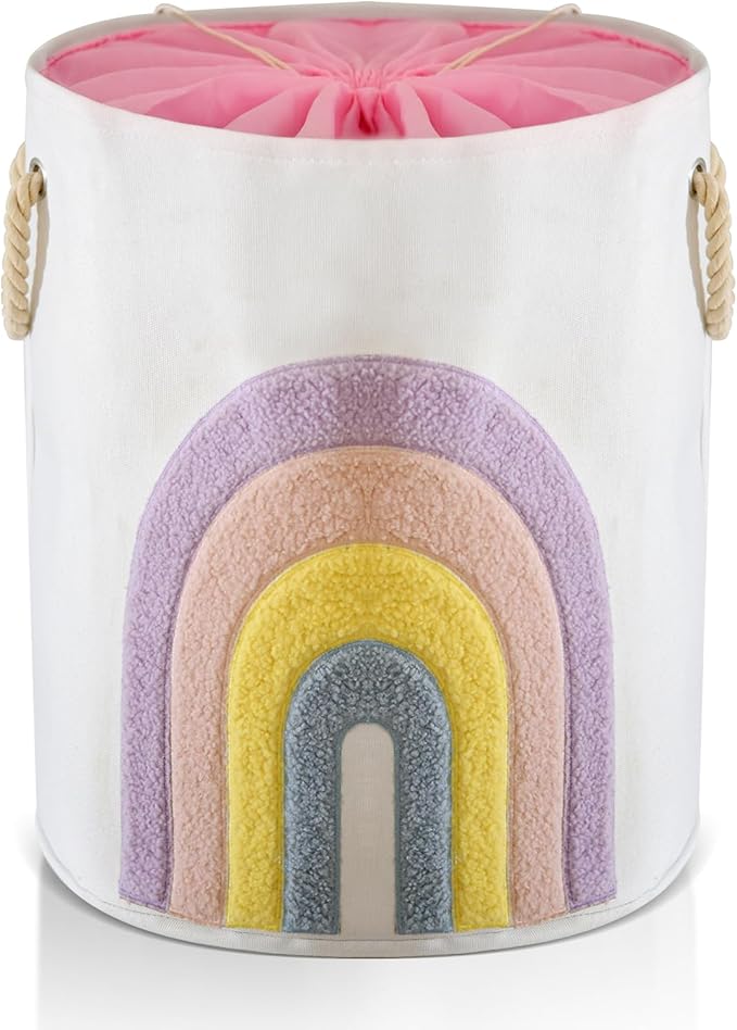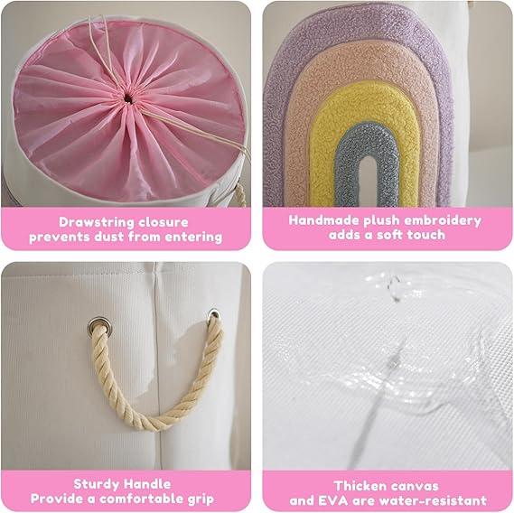 Bebek Çamaşır Sepeti Pembe, Kanvas 58L XL Giysi Sepeti İpli Kapatma Kız Çocuk Odası Oyuncak Sepetleri için, Kız Odası Dekoru Boho (Yağmur Yayı)