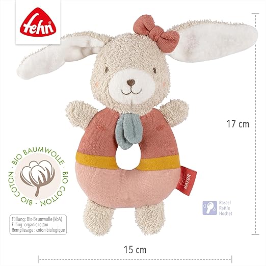 bebek halka kavrama oyuncağı tavşan fehnNATUR – organik pamuklu pelüş hayvan – oyun oynayarak öğrenmek için çıngıraklı oyun hayvanı – 0+ aylık bebekler ve küçük çocuklar için kavrama oyuncağı