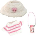 Detaylı tasarım: Kazak çizgili bir desene sahiptir, bere kalp tasarımı ile süslenmiştir; dekoratif su şişesi kıyafeti tamamlar ve ek bir cazibe katar; minyatür aksesuar severler için idealdir.
