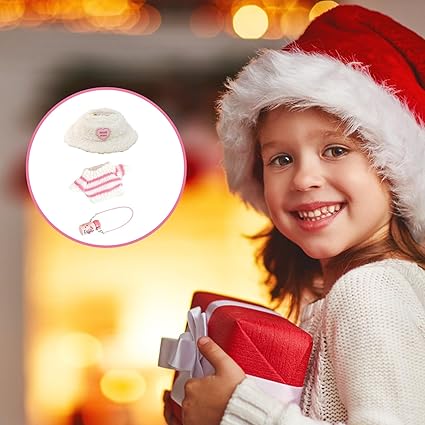 Detaylı tasarım: Kazak çizgili bir desene sahiptir, bere kalp tasarımı ile süslenmiştir; dekoratif su şişesi kıyafeti tamamlar ve ek bir cazibe katar; minyatür aksesuar severler için idealdir.