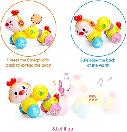 Bebek Oyuncakları, Toddler Müzikal Sürünen Tırtıl Oyuncakları Bebekler için 6 9 12 18 Ay