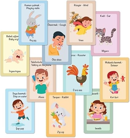 TÜRKÇE İNGİLİZCE RESİMLİ SES KAVRAM KARTLARI