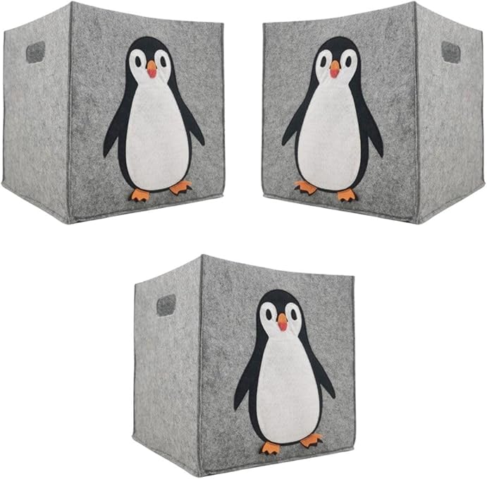Bee Penguen Tasarımlı Küp Bebek Çocuk Odası Organizer Oyuncak Sepeti Kirli Sepeti 3’lü Set