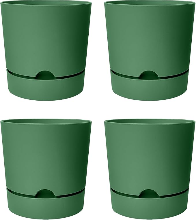 Begonya Saksı Tabaklı Drenajlı Mat Plastik Çiçek Saksısı (4 Adet, 3,3 Litre, 18cm, Yeşil)