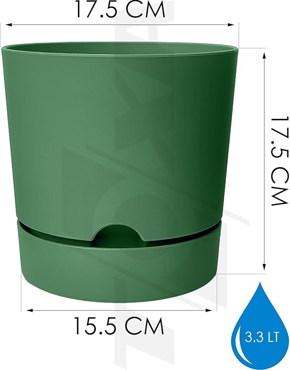Begonya Saksı Tabaklı Drenajlı Mat Plastik Çiçek Saksısı (Yeşil, 3.3 Litre)