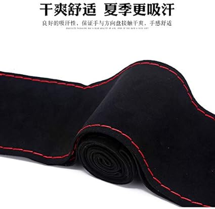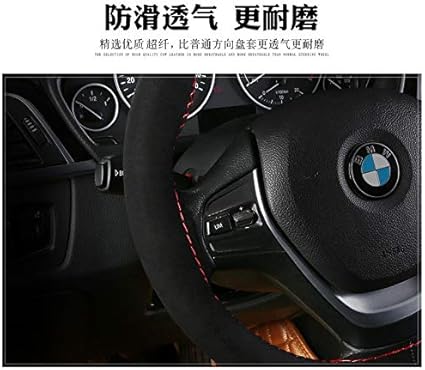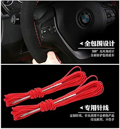 Bell Benzersiz yeni süet malzeme araba el dikişi direksiyon kılıfı boyut 37-38 cm (siyah kırmızı)