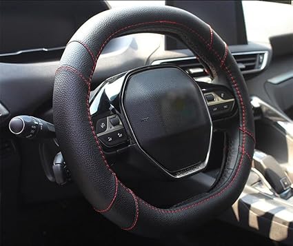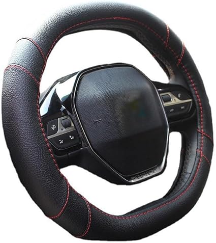 Bell Mikrofiber deri araç direksiyon kılıfı, Peugeot 3008 206 207 208 2016-2019 508 208 2019 e-208 için uygun (kırmızı çizgi)