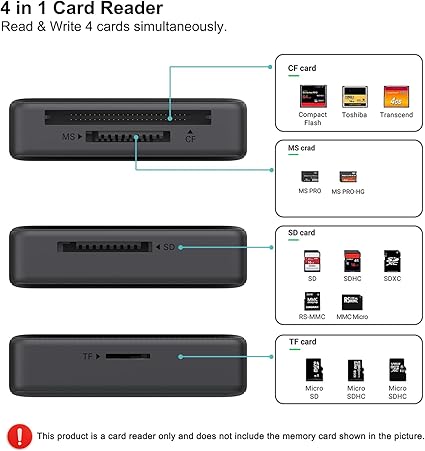 ÜSTÜN KARARLILIK – Dahili gelişmiş IC yongası, USB-C ve USB-A yüksek hızlı veri aktarım sinyalini yönetir, HD filmlerin saniyeler içinde aktarılmasına izin verir. Aynı anda bir kart okuyucudur ve aynı anda 4 kart okuyabilir ve yazabilir.