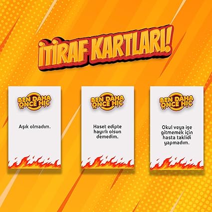 Bu eğlenceli kutu oyunuyla arkadaşlarınızla veya ailenizle keyifli vakit geçirirken birbirinizi daha iyi tanıyacak ve unutulmaz anlar yaşayacaksınız. Siz de “Ben Daha Önce Hiç” ile eğlenceli itirafların keyfini çıkarın.