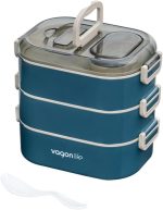 Bento 1450ml Lunchbox Üç Katlı 5 Bölmeli ve Mini Sosluklu Çelik Sefer Tası Yemek Kutusu (Lacivert)