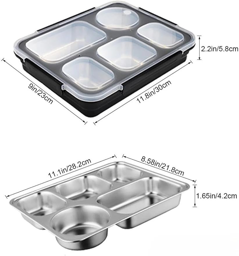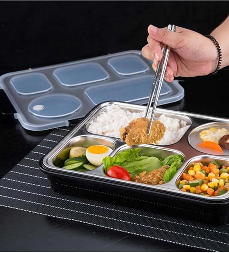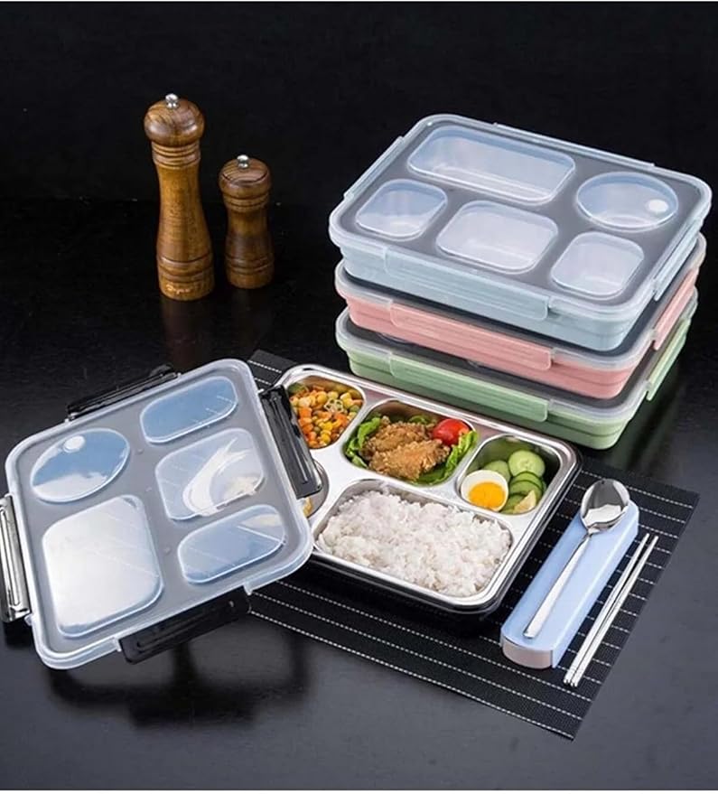 Bento 1600ml Lunchbox Tek Katlı 5 Bölmeli Çelik Sefer Tası Yemek Kutusu (Açık Yeşil)