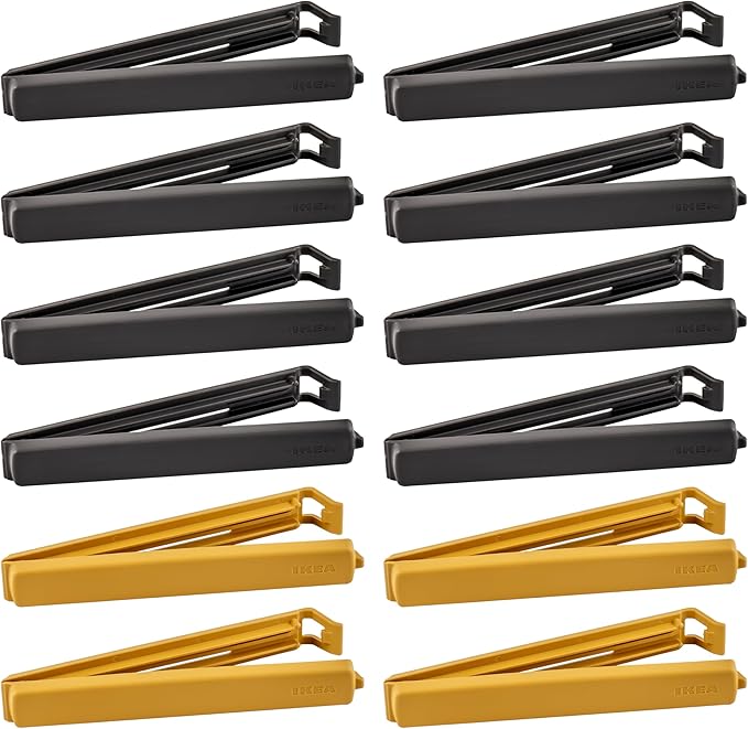 Bevara büyük plastik kilit mandalları, 14 cm uzunluğunda, gri ve sarı, 12 klipsli set