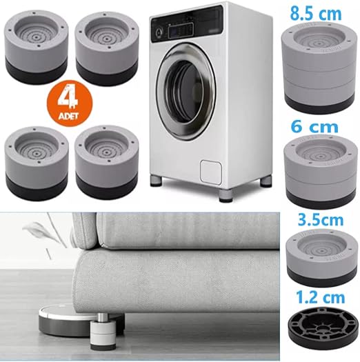 Beyaz eşya ayağı Çamaşır Makinesi Mobilya Titreşim Önleyici Kaydırmaz ve yükseltici 4 lü set (8,5 cm)