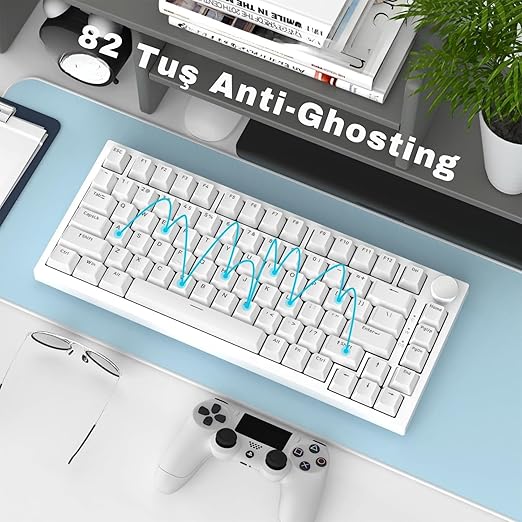 【Yüzde 75 Klavye】: 82 tuşlu bilgisayar oyun klavyeleri %75 düzenini benimser, masa alanını boşaltırken temel ok ve işlev tuşlarını korur. N-tuş rollover ile, bilgisayar klavyesi birden fazla tuşa aynı anda basılmasına yanıt verebilir, kısayol tuşlarını kullanmak veya son derece heyecan verici gerçek zamanlı oyunlarda yardımcı olur.USB kablolu, tak ve çalıştır!