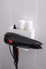 Beyaz Metal Yapışkanlı Saç Kurutma Askısı, Yapışkanlı Banyo Düzenleyici Organizer Fön Makinelik MT83B
