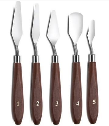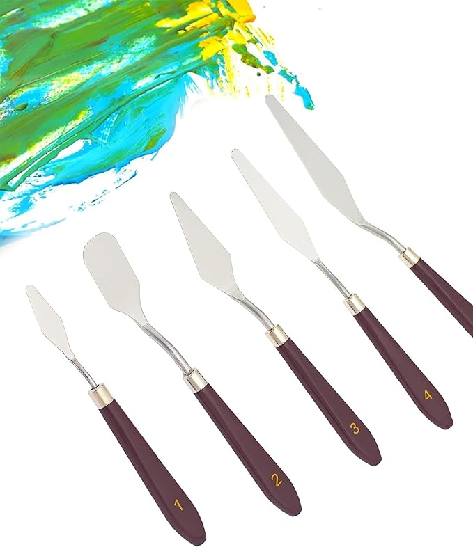 Bıçağı 5 Parça Paslanmaz Çelik Spatula Seti, Kil Hamuru Pasta Krema Yağlıboya için Ahşap Saplı Süsleme Şekil Verme ve Kazıma, Boya Araçları,Mutfakta ve diğer Hobi ve El Sanatları İçin