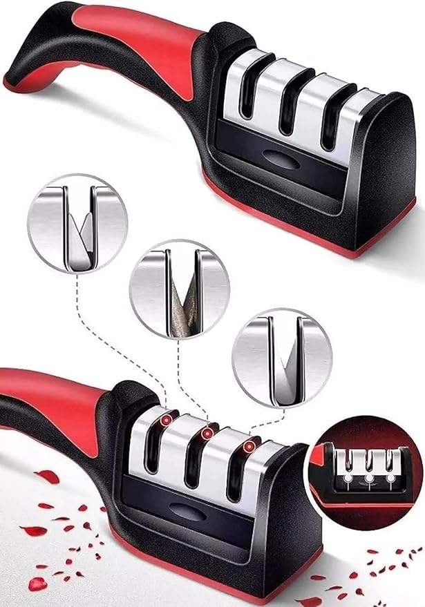 Bıçak Bileyici – 3 Açılı Elmas, Seramik, Tungsten Çelik Bileme Aleti | Mutfak & Şef Bıçakları İçin