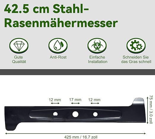 biçme makinesi için yedek bıçak, çim biçme makinesi bıçağı, 42,5 cm, Einhell akülü çim biçme makinesi GE-CM 43 Li M & GE-CM 36/43 Li M için, yedek bıçak 430 mm