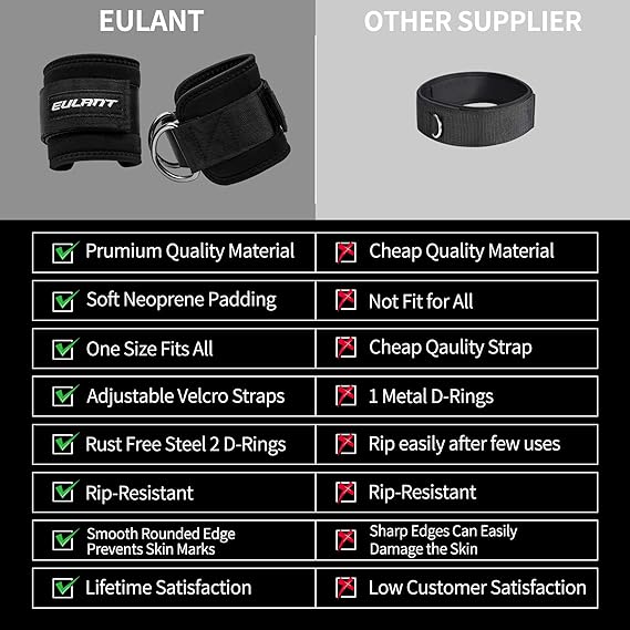 → EULANT ayak bileği kayışları birinci sınıf kaliteli ve sağlam naylondan üretilmiştir. Rahatlı, güçlü ve dayanıklıdır.