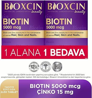 Biozcin Beauty Biotin 5000mcg 30 Tablet 1 Alana 1 Bedava (Toplam 60 Kapsül)