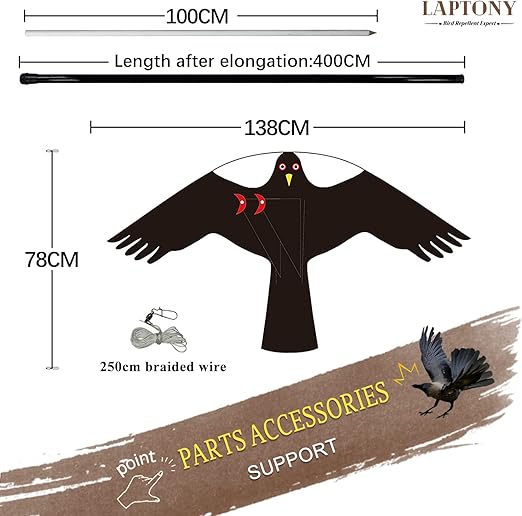 Yüksek kaliteli malzeme: Naylon bez ve çelik çubuktan yapılmış gerçekçi kartal ejderha, rüzgarda uçan kuşları ve haşereleri korkutur