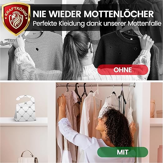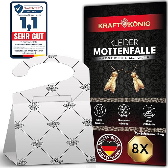 Birinci sınıf elbise güvesi tuzağı – 8 x güve tuzağı, uzun süreli etkili elbise güvesi – elbise askıları için de uygundur – kokusuz elbise güveleri tuzağı – Alman malı