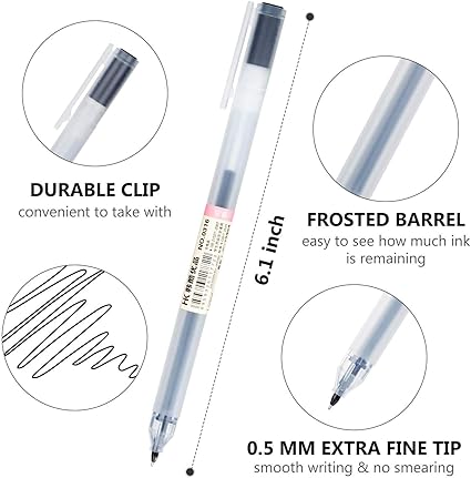 İnce uçlu jel kalem, 0. 5 mm uç, mükemmel performans sunmak için daha pürüzsüz, ince çizgiler oluşturur. Uzun ömürlü kalem, kapağı kolayca çıkar ve rahat bir tutuş sağlar