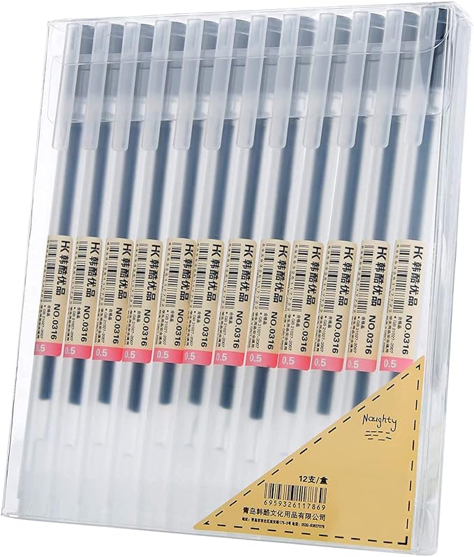 Birinci sınıf Japon tarzı siyah Jel Kalem, 12’li paket, 0,5 mm kalem ucu, günlük tutma, karalama, çizimler, notlar için