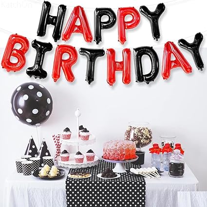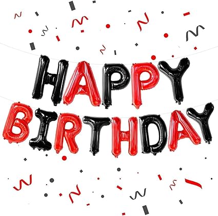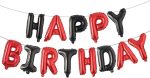 Birthday Folyo Balon (Kırmızı Siyah Düz Yazı)