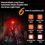 【Akıllı Fren Sensörü】Araç hareket halindeyken akıllı bisiklet arka lambası, aracın yavaşlamasının arkasında sizi uyarmak için otomatik olarak kırmızı bir ışığı (3 saniye) vurgulayacaktır. Özellikle geceleri sürüş güvenliğinizi daha iyi sağlayabilir. Seçebileceğiniz 6 ışık modu: Sabit ışık, nefes alma, yavaş flaş, hızlı flaş, ritmik flaş, ECO akıllı flaş.
