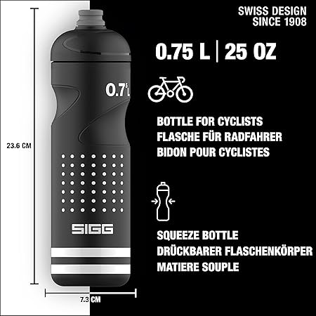 Sportif tasarım: İçeceği hızlı bir şekilde boşaltmak için sadece hafifçe sıkılması gereken yumuşak, bisikletçiler için özel olarak geliştirilmiş bir spor şişesi. Ele mükemmel oturur ve çoğu bisiklet şişe tutucusuna uyar.